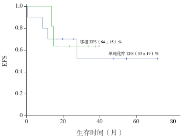 图 3 HR+TKl组移植和化疗患儿EFS比较 |
